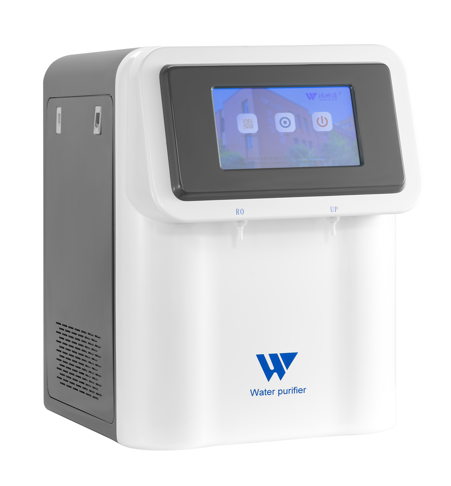 全觸摸彩屏操作系統,采用知名PLC模塊自主編程控制,實時顯示水質、系統狀態和報警信息;